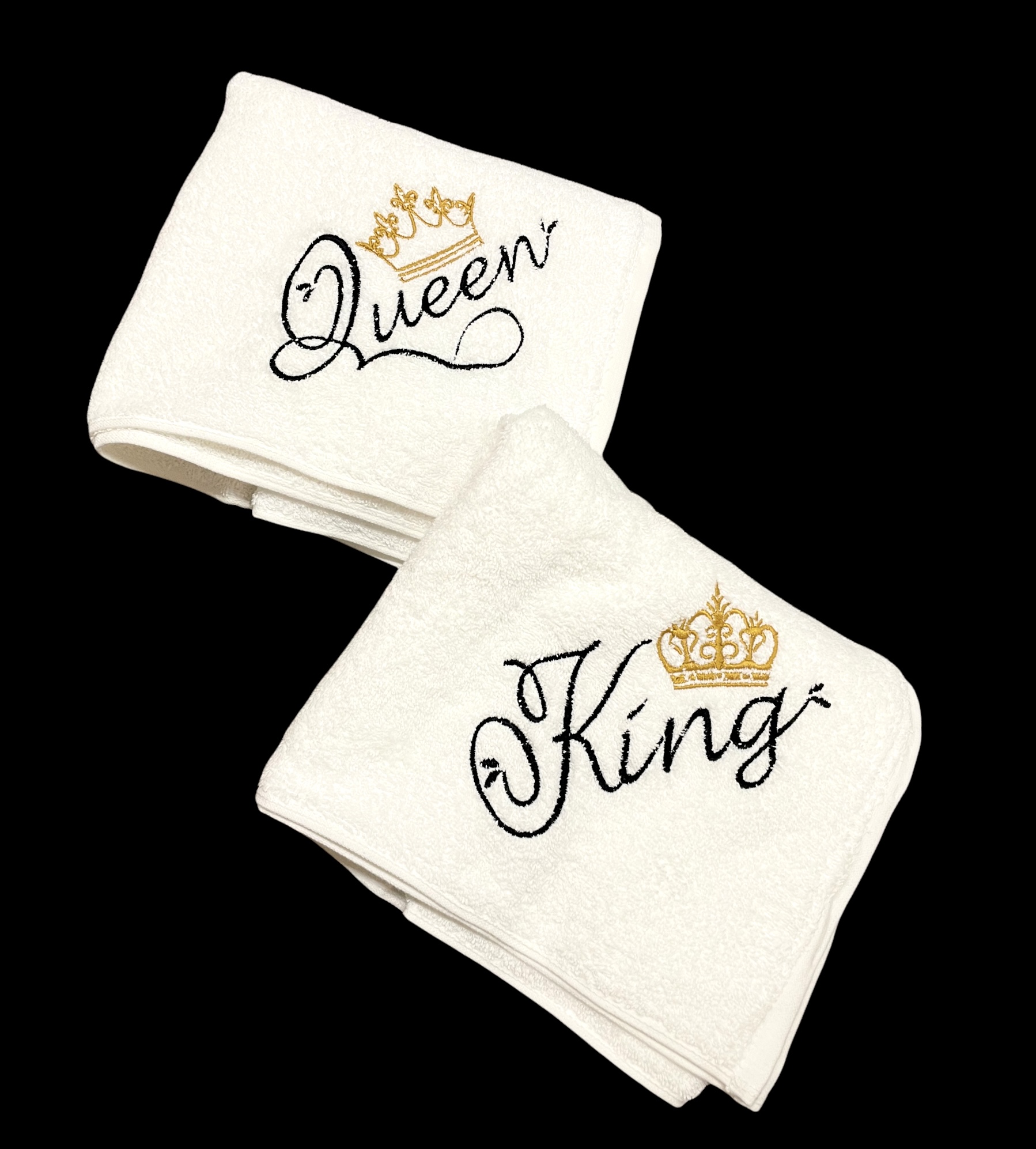 Valgete saunalinade komplekt "KING" ja "QUEEN"