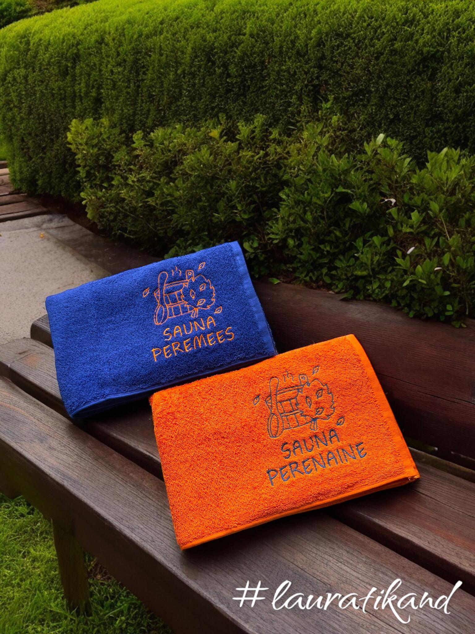 Komplekt 75x150 (Tumesinine Sauna peremees ja Oranž Sauna perenaine) (Läbi müüdud)